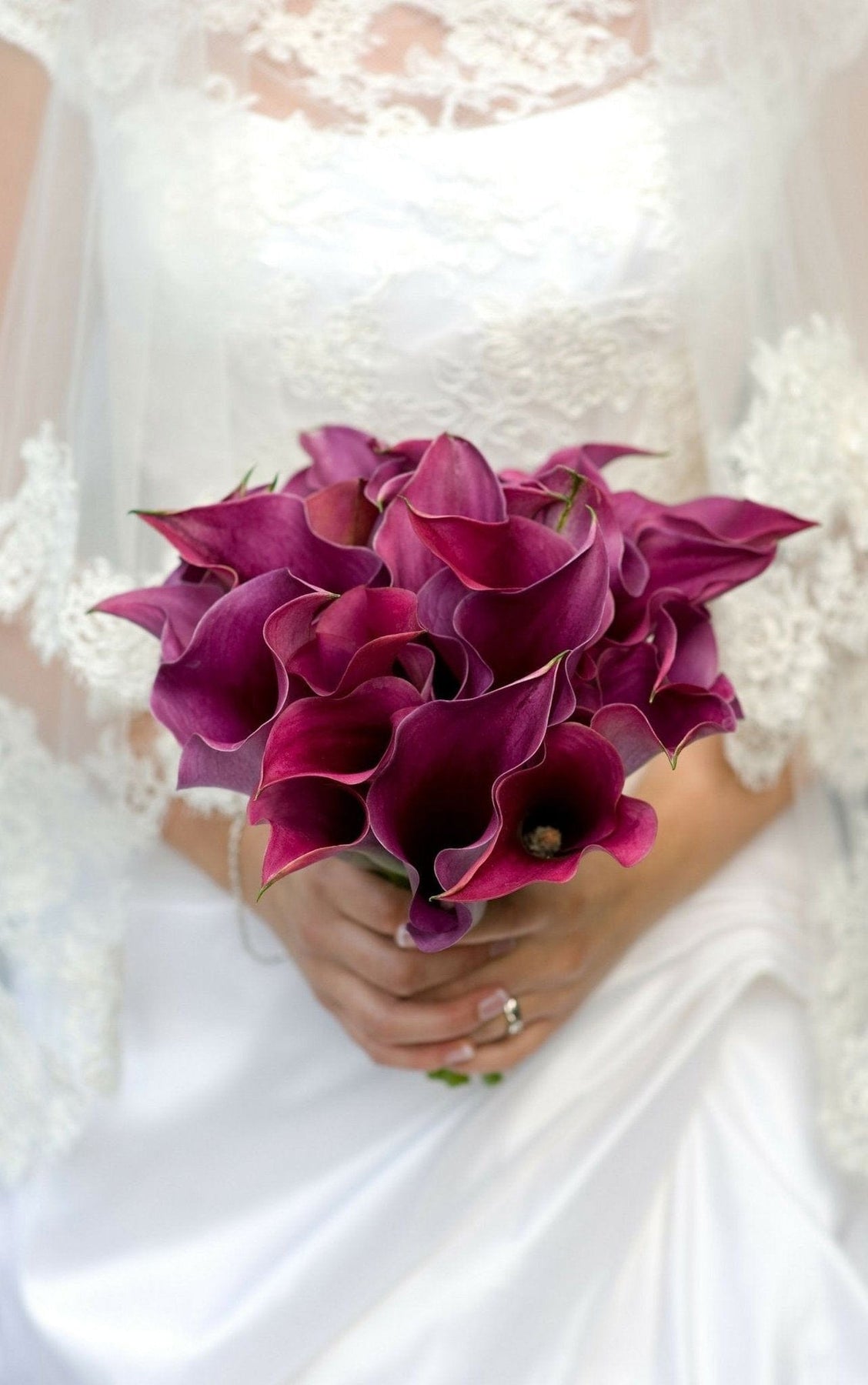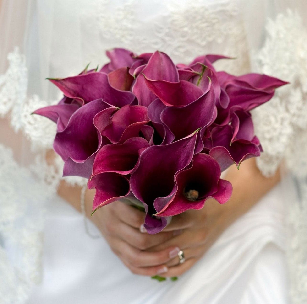 Glorify your beauty and elegance on your special day with this charming selection of calla lilies. This sleek yet stunning bouquet is sure to make you look more glorious than ever before. Bouquets are hand-tied in white satin ribbon.