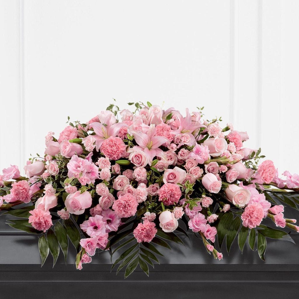 Casket Spray: Roses, Carnations & Lilies (Pink & Green)