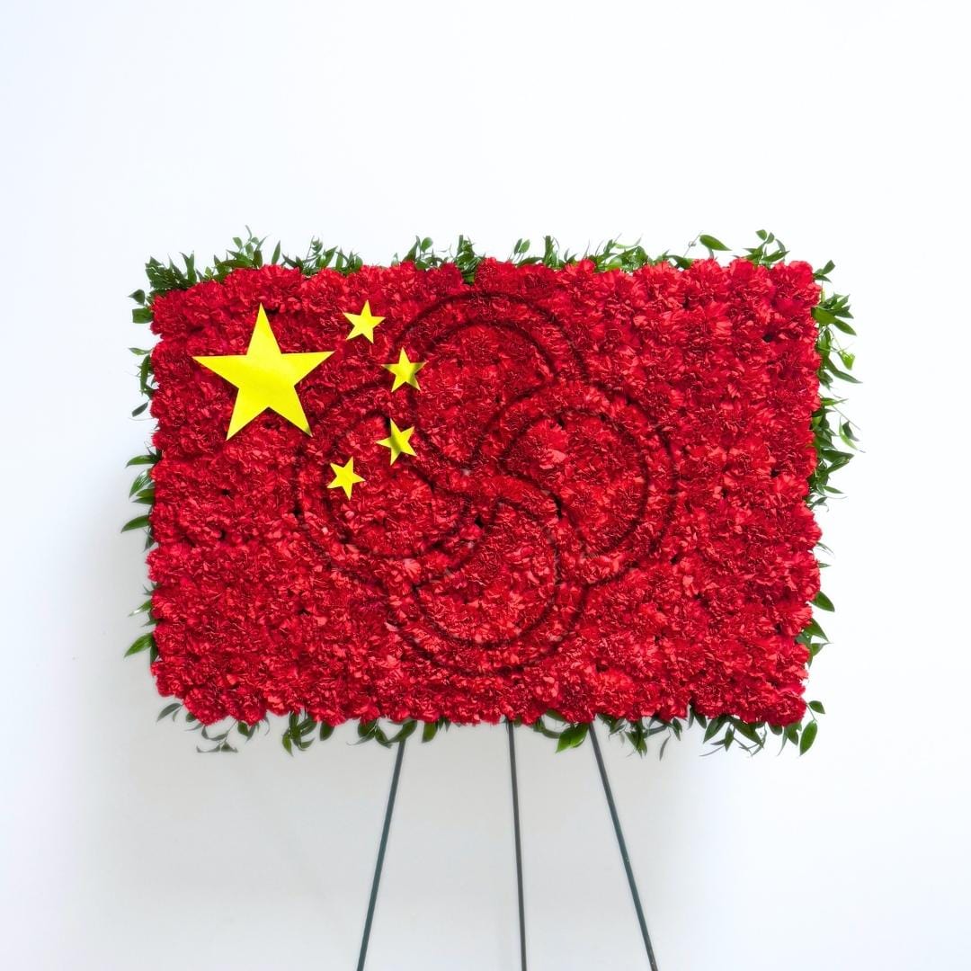 Show your Chinese pride with this stunning floral arrangement in the shape of the national flag. Crafted with fresh red blooms, it’s perfect for any occasion—whether celebrating a special moment or adding a patriotic touch to any space.