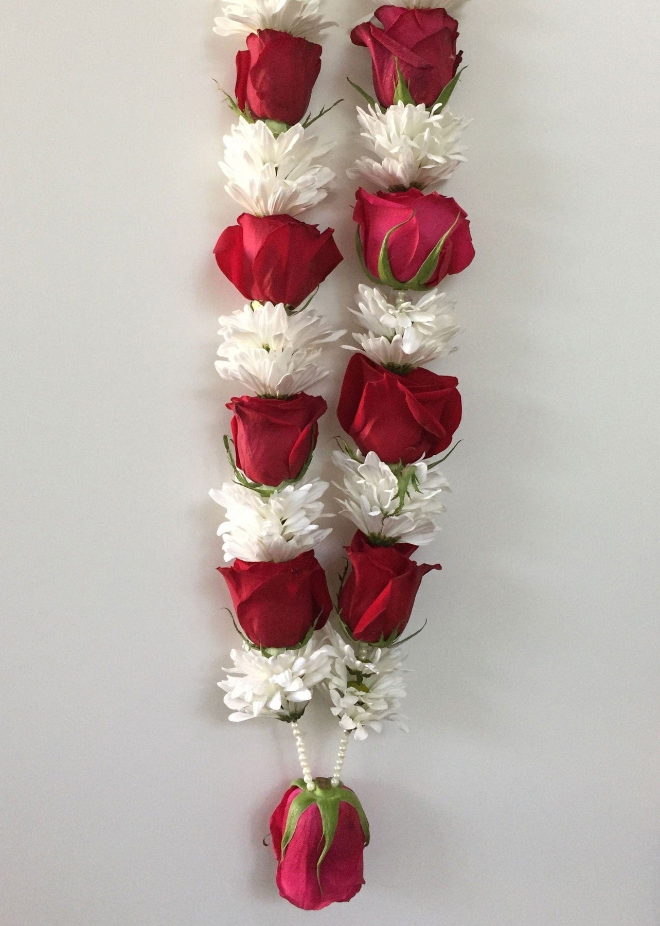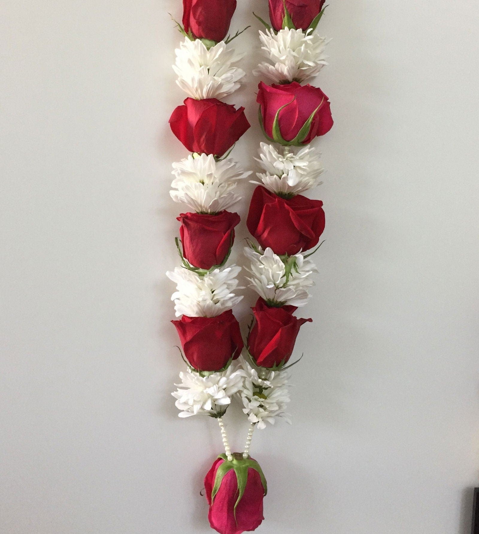 A garland of roses and carnations binds together to signify the memories that will be cherished.