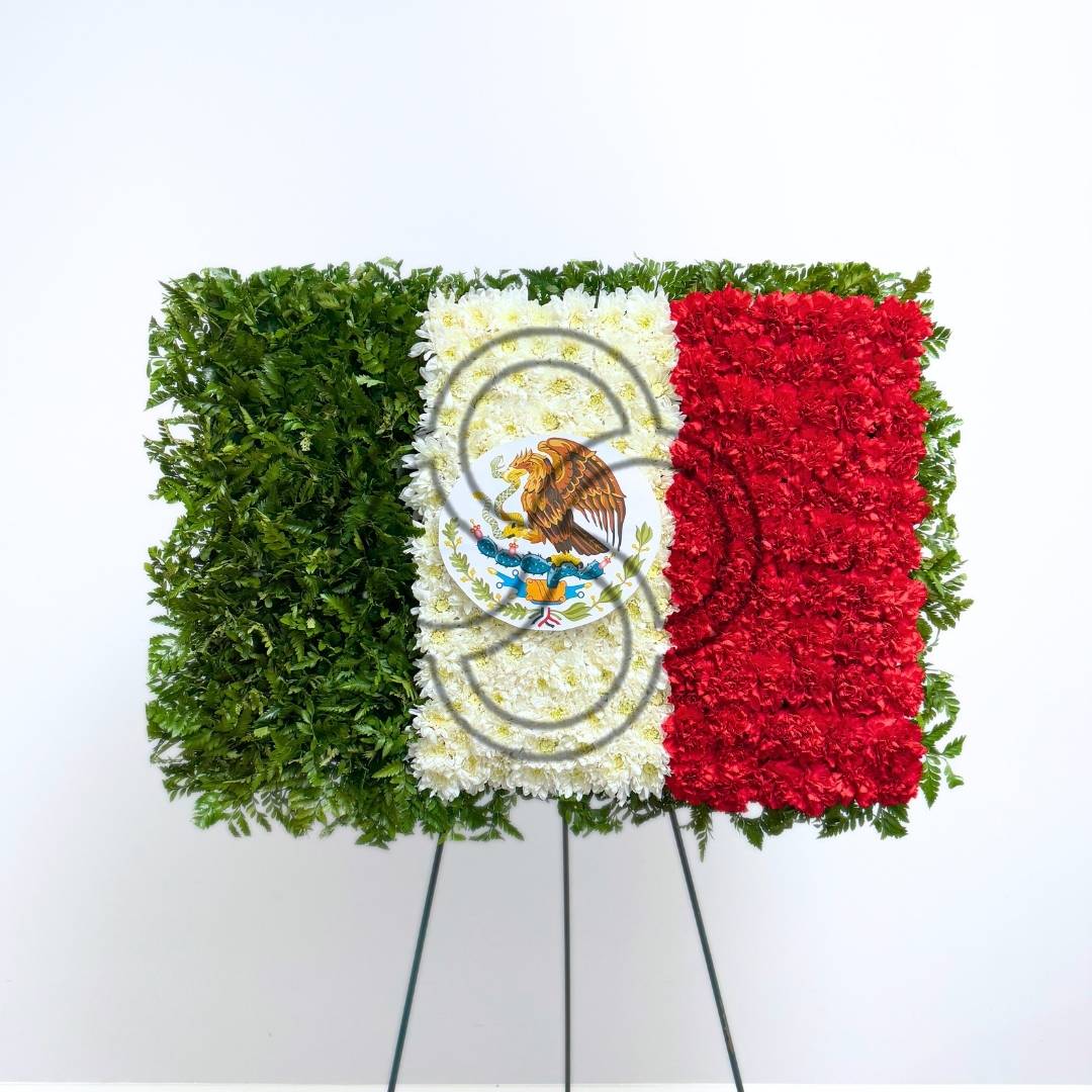 Show your love for Mexico with this stunning floral arrangement in the shape of the national flag. Featuring fresh white, and red blooms, it’s perfect for any occasion—whether celebrating a special moment or adding a patriotic touch to any space.