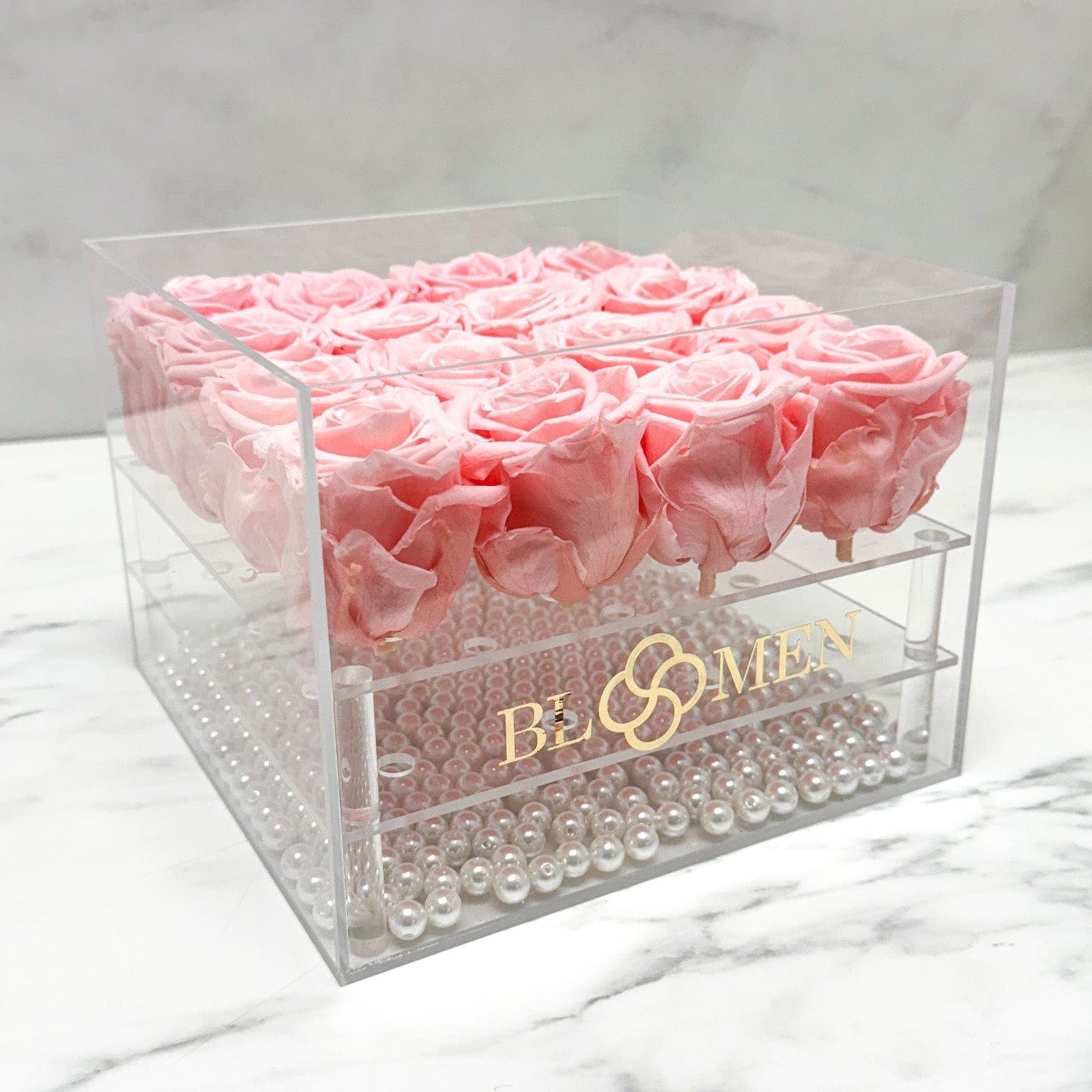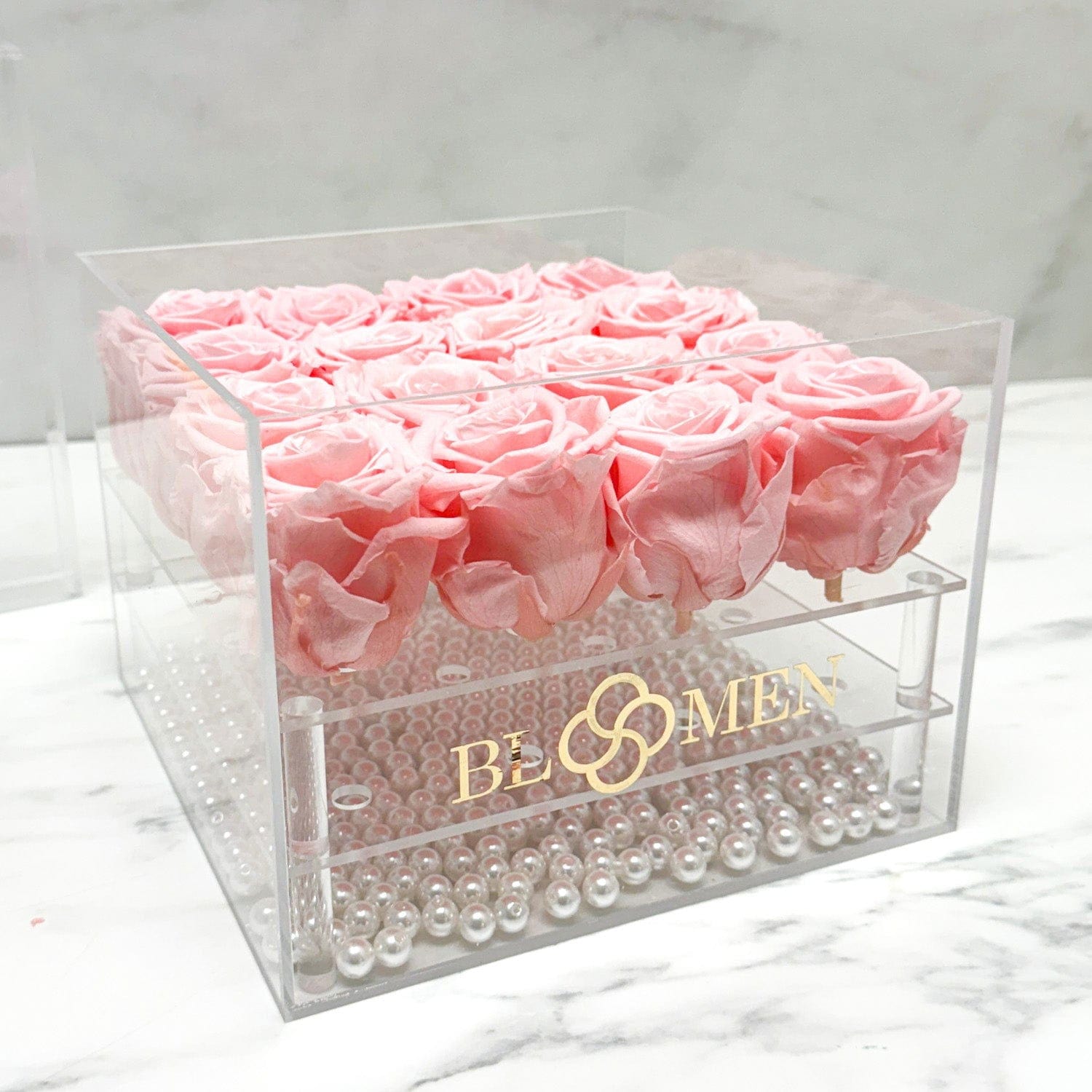 Real roses picked at their most beautiful then preserved to maintain their natural shape , colour and brightness. Beautiful roses in a clear case made this modern arrangement a great way to showcase your love.