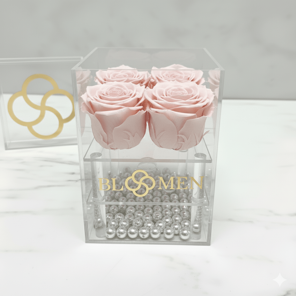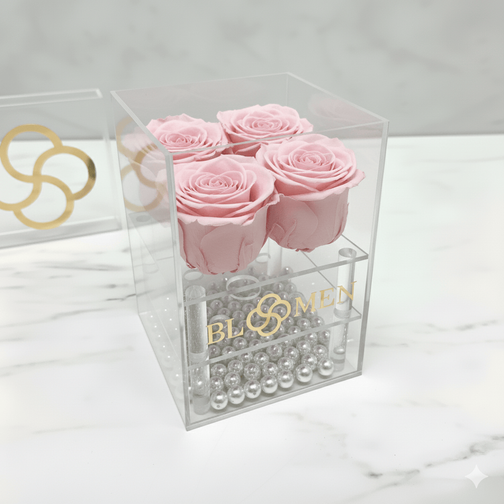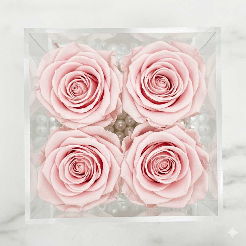 Encased in a sleek, modern clear box, this stunning arrangement is a contemporary and lasting way to showcase your love and appreciation.