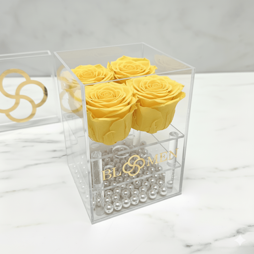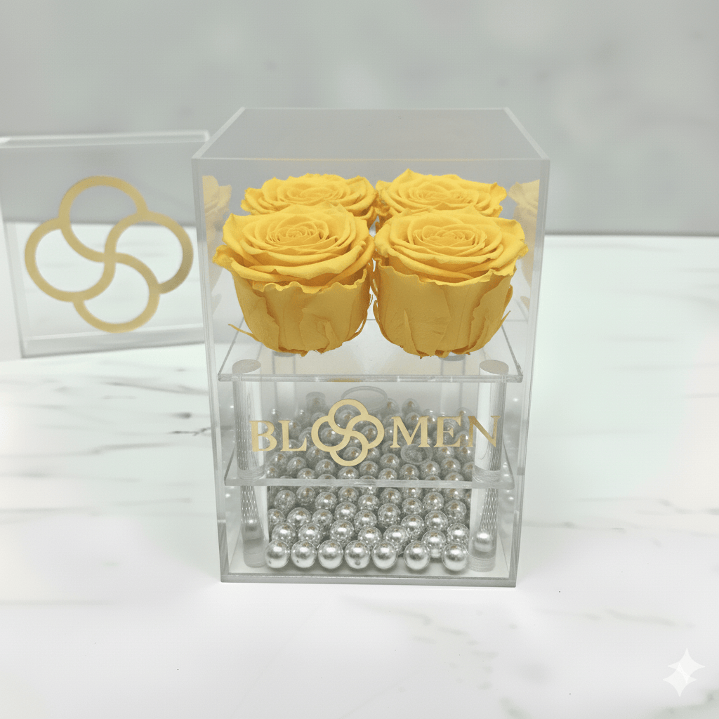 Presented in a sleek, modern clear case, this elegant arrangement is a beautiful and lasting way to showcase your love and appreciation.
