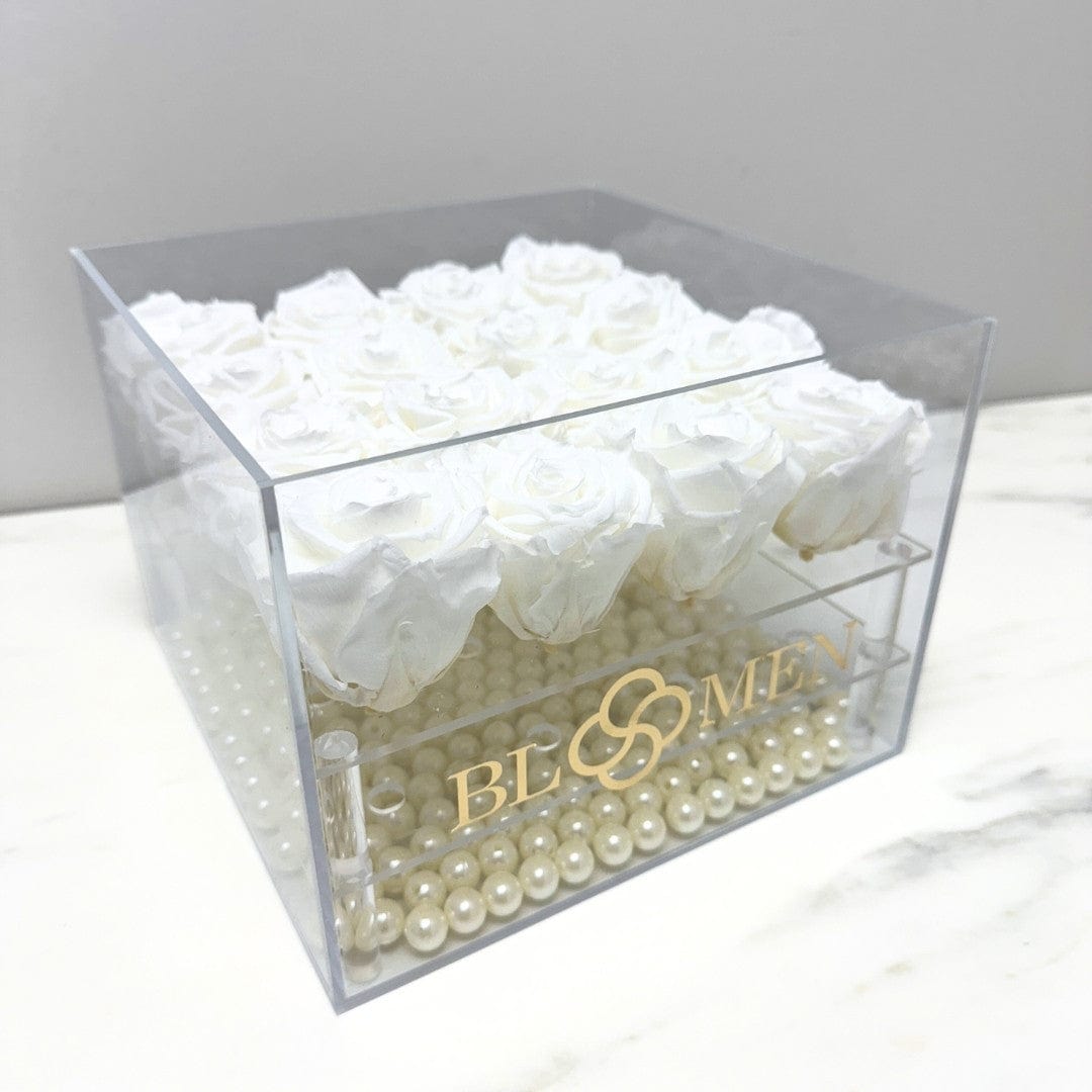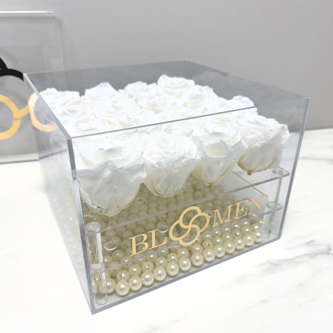 Price includes: Clear Case, Beads, Flower Care Instructions, Personalized Message, and of course, the Roses.