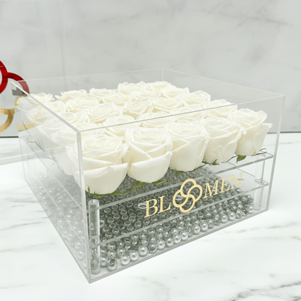 Each real rose is hand-selected at its peak and carefully preserved to maintain its natural shape, colour, and radiance. Bloomen’s Everlasting Roses last up to one year, beautifully presented in a modern clear case that highlights their elegance.